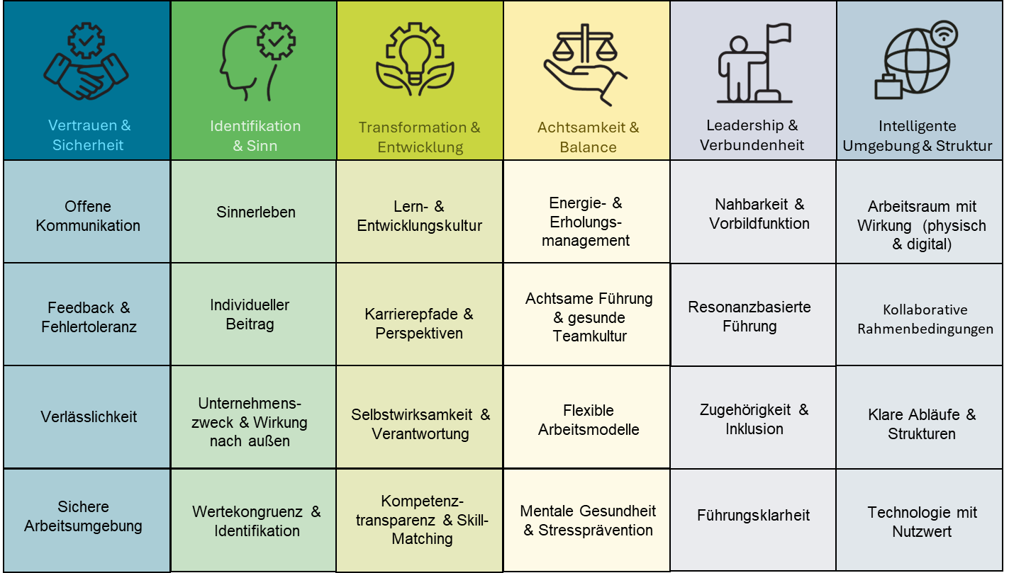 Achtsamkeit & Balance stehen für ein Arbeitsumfeld, das Gesundheit, Erholung und Leistungsfähigkeit langfristig sichert. Dieses Prinzip adressiert das Bedürfnis nach mentaler Stabilität, gesunder Belastung, Selbstfürsorge und Ausgleich. In einer zunehmend verdichteten, hybriden und digitalisierten Arbeitswelt ist die Fähigkeit, sich selbst und andere bewusst wahrzunehmen, zentrale Voraussetzung für nachhaltige Produktivität und Bindung.